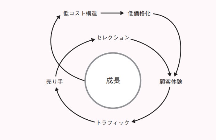 好循環をビジュアルに描き出すことができれば、投資家にアピールすることもできる。実際、アマゾン・ドット・コムを創業したジェフ・ベゾス氏は、アマゾンのビジネスモデルの好循環を描き出して資金集めを行った。その図には、取引量を拡大させることでボリュームディスカウントと品揃えの充実の双方が実現し、それがさらなる成長へとつながる様子が示されている。
