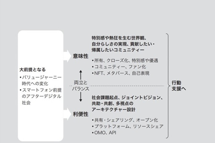 言い換えると、「ユーザーにとって何かしらの行動やアクションを可能にしていなければ、企業としてなんの価値もない時代になってきている」ということになる。顧客が自分の中でどれだけ多くのことを受け止め、理解や解釈をしていたとしても、世の中に対して発信や貢献をし、社会やコミュニティに干渉できないと意味がない。