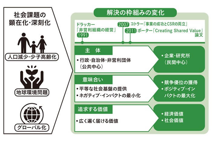 気候変動問題や少子高齢化をはじめ現代は様々な社会課題が顕在化している。その解決に向け、社会や産業のシステムの転換が急務だ。