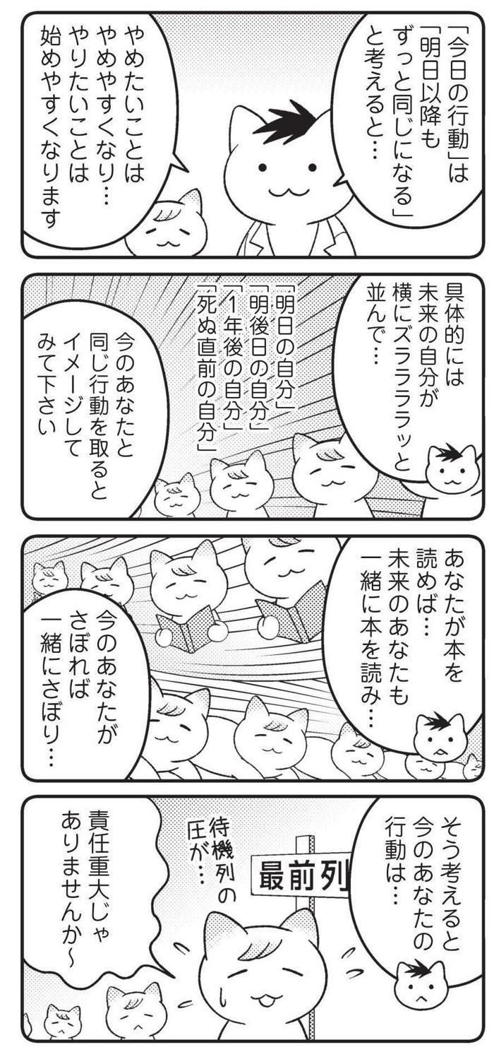 いい習慣をつけたいなら、あなたの「今の数分」は「毎日の数分」だと考えてみよう。今日の行動が、そのまま明日も明後日もその次も……と、永遠にコピーされると考えるのだ。