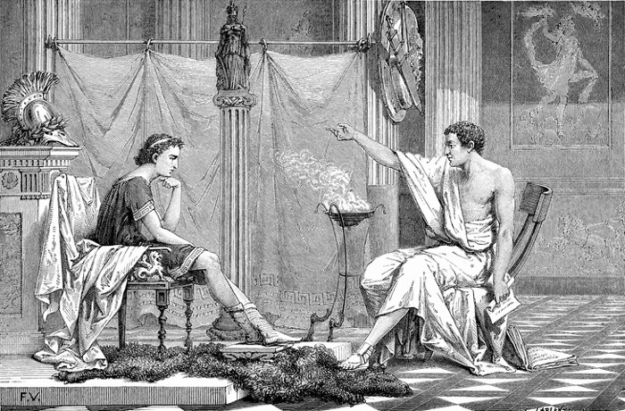 アリストテレスの師・プラトンは、形而上学や数学といった純粋な理論を追究する人たちの代表である。それゆえに「真理は常に常識に反する」ものであり、その最たるものである哲学者を統治者とすれば、意見の衝突に適切な裁定を下せると考えていた。一方アリストテレスは、常に広く人々の視点から調査をはじめ、問いかけを重ねながら考えを洗練させていった。政治における理性の役割を認めつつ、「私はどうしたらいいか?」に答える「市民の具体的で実用的な推論」と、「私は何を知り得るか?」に対応する「哲学者の抽象的で理論的な推論」とを区別した。