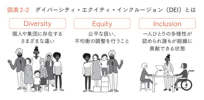 人的資本経営の推進に欠かせないのが、ダイバーシティ(多様性)だ。ダイバーシティは、単に多様な人材が存在するだけではなく、「ダイバーシティ・エクイティ・インクルージョン(DEI)」として捉える必要がある。